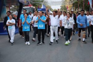 ប្រតិភូក្រសួងទេសចរណ៍ ដឹកនាំដោយឯកឧត្តម ហួត ហាក់ រដ្ឋមន្ត្រីក្រសួងទេសចរណ៍ និងលោកជំទាវ និងថ្នាក់ដឹកនាំខេត្ត ដឹកនាំដោយ ឯកឧត្តម វ៉ី សំណាង អភិបាល នៃគណអភិបាលខេត្ត និងលោកជំទាវ អញ្ជើញចូលរួម ពិធីរត់កម្សាន្តមហាជន ចម្ងាយ ៥គីឡូម៉ែត្រ ពិធីបុណ្យទន្លេលើកទី៩ ក្រោមប្រធានបទ «គុណតម្លៃទន្លេ ផ្សារភ្ជាប់ វប្បធម៌ និងទេសចរណ៍ធម្មជាតិ» នៅបឹងតាកែវ ស្ថិតនៅភូមិ១ សង្កាត់រកាក្នុង ក្រុងដូនកែវ ខេត្តតាកែវ ។